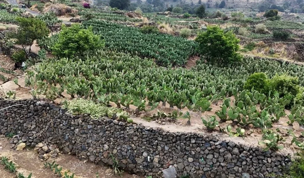 El escenario: Milpa Alta es el hogar del Teuhtli, el “Venerable Guerrero” que se convirtió en volcán para custodiar el sur del valle. A sus pies, se extiende una de las maravillas de ingeniería más antiguas de México: las terrazas prehispánicas. Un sistema de muros de piedra volcánica que desafía la gravedad y que ha alimentado a esta tierra por más de mil años.